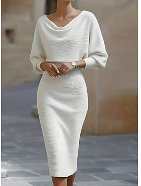 Femmes Robe Midi Robe de travail Robe fourreau Élégant Mode Moderne Bureau Mince Uni manche longue Col Bénitier Noir Blanche bleu marine Gris Printemps Automne