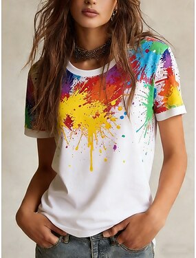 Carnaval Mardi Gras Femmes T-shirt Imprimé Graphique Abstrait Élégant Classique Occasionnel Manche Courte Col ras du cou Hauts Réguliers Quotidien Sports Sortir Blanche Été Printemps