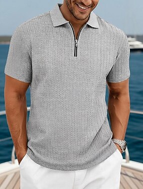 Homme Polo à fermeture éclair Texturé Occasionnel Fête Revers Zip quart Manche Courte Mode Basique Uni Jacquard Quart de zip Printemps & Été Été Printemps Coupe régulière Bleu Ciel Noir Blanche Rouge