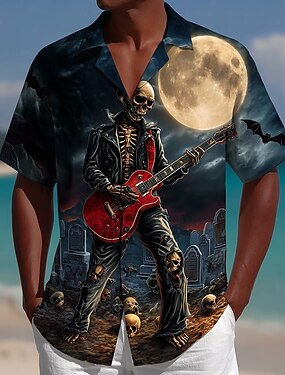Homme Guitare Planète Chemise Chemise d'été Chemise Boutonnée Manche Courte Vintage Rétro Vacances Festival de Musique Été Printemps Col Rabattu Impression 3D chemises à col Une poche avant Bleu de