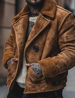 Homme Veste en faux suède Manteau en peau lainée Veste en Polaire Coupe-vent Décontracté Quotidien Coupe-Vent Avec Poches Col en polaire Hiver Couleur Unie ancien Mode Revers Régulier Marron Veste