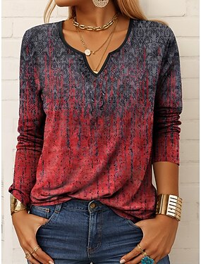 Femmes T-shirt Imprimé Graphique Géométrique Abstrait ancien Élégant Moderne manche longue Encolure en V Hauts Réguliers Quotidien Week-end Bleu Rose Claire Vin Rouge Orange Printemps Automne
