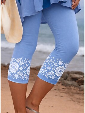 Femmes Pantalon capri Leggings Vacances Hawaïen Élégant Capris Taille moyenne Fleuri Graphique Imprimé Confort Élastique Extérieur Vacances Formel Bleu Blanche Vert Été Printemps Automne Coupe Slim