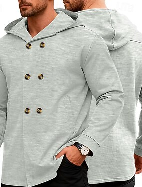 Homme Trench Veste à Capuche Formel Maison Coupe-Vent Avec Poches Printemps Automne Couleur Unie Actif ancien Col de chemise Régulier Noir Rouge Bleu Vert Kaki Veste