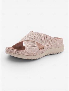 Sandales confortables à brides croisées roses pour femme – mules respirantes et légères en maille, semelle souple et rembourrée, chaussures d'été décontractées pour la maison, les voyages et la plage.