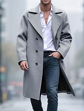 Homme Manteau Trench Trench-Coat Long Vacances Quotidien Automne Hiver Similicuir Coupe-vent Vêtements d'extérieur Vêtement Tenue Mode Classique Uni Avec Poches Revers Simple Boutonnage