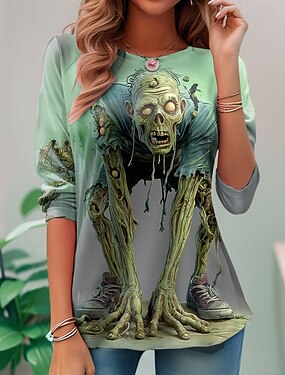 Homme Zombies 3D T-shirt manche longue T-shirt Impression 3D Col ras du cou Chemise Mode Exagéré Rue Occasionnel Quotidien Vert 1 # Vert 2# Rose Claire Été Printemps Automne Vêtement Tenue S M L XL