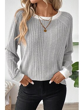 Femmes Chemisier Patchwork Couleur Unie Élégant Basique Occasionnel Manche 3/4 Col ras du cou Hauts Réguliers Quotidien Bleu Vert cendré Noir Rouge bleu marine Printemps Automne