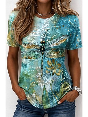 Femmes T-shirt Imprimé Graphique Animal Plantes ancien Élégant Classique Manche Courte Col ras du cou Col rond Hauts Longs Occasionnel Quotidien Week-end Blanc / Vert Vert et Bleu Blanche Ét