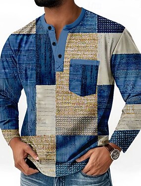Homme Graphique Patchwork Géométrique Chemise vintage Chemise Henley T-shirt manche longue Mode Designer Confortable Occasionnel Quotidien Extérieur Printemps & Automne Bleu Marron Vert Henley