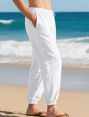 Homme Pantalons en Lin Pantalons Pantalon d'été Pantalons de Plage Pantalon de jogging Cordon de serrage Taille Élastique Poche à Rabat Couleur Unie Confort Respirant Quotidien Extérieur Plage