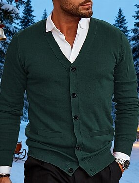 Homme Gilet Cardigan Pull Court Pull Tricoté Côtelé Tricoter Hauts Réguliers Boutonner Avec Poches Couleur Unie Col en V Mode Classique Vacances Tenue quotidienne Vêtement Tenue Automne & Hiver Rouge