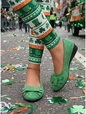 Ballerines vertes à nœud pour la Saint-Patrick - chaussures habillées confortables et décontractées à petit talon, style irlandais festif, idéales pour les défilés, les fêtes, les événements de fin