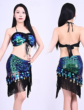Jupe de sirène en sequins samba costume scintillant pour Noël et le Nouvel An jupes mini de danse du ventre costume de performance