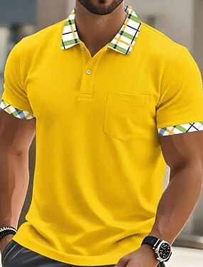 Homme Chemise de golf Polo Piqué Affaires Occasionnel Classique Manche Courte Mode Basique Couleur Unie Plaid Boutons Été Printemps Printemps & Automne Coupe régulière Blanche Jaune bleu marine Vert