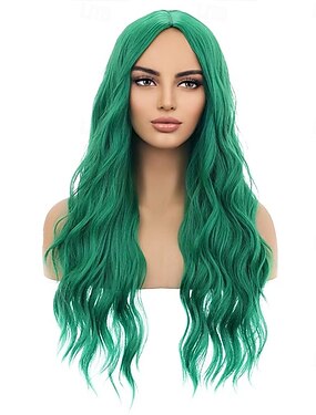 Perruques Vertes pour Femmes Filles Longues Bouclées Ondulées Émeraude Perruques Partie Médiane Résistantes à la Chaleur