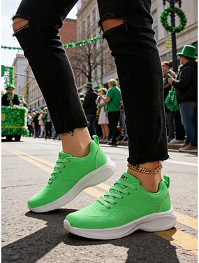 Baskets chunkies color block vert et blanc pour femmes Mardi Gras avec lacets en corde – Chaussures à plateforme vibrantes pour carnaval fêtes des années 90 et mode urbaine