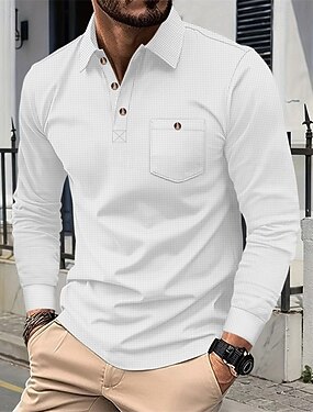 Homme Chemise de golf Polos de Golf Travail Occasionnel Revers manche longue Basique Moderne Uni Avec Poches Boutons Printemps Automne Coupe régulière Noir Blanche Vin Vert foncé Kaki Gris Chemise de