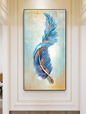 Peinture à l'huile faite à la main peinte à la main art mural moderne plume abstraite salon décoration de la maison décor cadre tendu prêt à accrocher