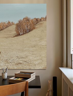 Fait main Peinture à l'huile Peint à la main Vertical Abstrait Paysage Moderne Rideau (sans cadre)
