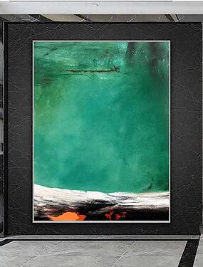 peinture à l'huile faite à la main sur toile, décoration murale abstraite verte pour la décoration intérieure, peinture roulée sans cadre non étirée