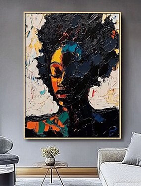 Peinture à l'huile faite à la main sur toile, décoration murale, simple, abstraite, portrait, fille africaine, pour la décoration intérieure, cadre tendu, peinture suspendue/enroulée, sans cadre,