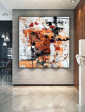 Peinture à l'huile sur toile, réalisée à la main, décoration murale abstraite moderne pour le salon. Toile roulée sans cadre ni châssis / avec châssis.