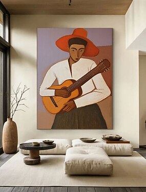 Peinture à l'huile abstraite peinte à la main représentant un guitariste, figures abstraites, art mural moderne sur toile, portrait de musicien, art mural de guitariste