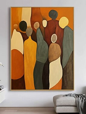 Tableau abstrait à l'huile, peint à la main, représentant des personnages colorés. Décoration murale moderne pour salon, entrée ou salle à manger.