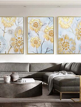 main peint à la main peinture à l'huile mur art abstrait marine or fleur peinture à l'huile décoration de la maison décor toile roulée pas de cadre non étiré