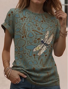Femmes T-shirt Imprimé Graphique Animal ancien Élégant Classique Manche Courte Col ras du cou Col rond Hauts Réguliers Quotidien Week-end Vert et Bleu Vert Claire Vert foncé Été Printemps Automne