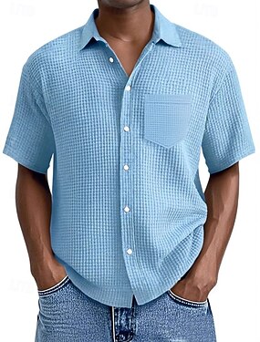 Homme Chemise Chemise gaufrée Chemise Décontractée Bleu Noir Blanche Vert Claire Rose Claire Manche Courte Uni Col de chemise Occasionnel Quotidien Froncé Vêtement Tenue Élégant Mode Occasionnel