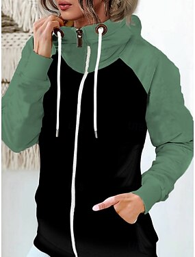 Femmes Veste à Capuche Confortable Respirant Fermeture éclair Avec Poches Occasionnel Bloc de Couleur Vacances Rue Occasionnel Tenue quotidienne Fermeture éclair Régulier À capuche Coupe régulière
