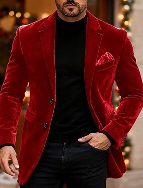 Hommes Manteau d'Hiver Blazer de Noël Blazers en velours Formel Quotidien Classique Hiver Automne & Hiver Velours Couleur Unie Droit 1 bouton veste Rouge Bordeaux Bleu Roi Vert foncé