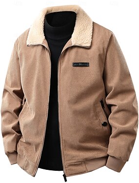 Homme Veste en Velours Côtelé Veste en Polaire Formel Maison Avec Poches Col en polaire Automne Hiver Couleur Unie ancien Neutre Col Régulier Noir Marron Vert Grise Veste