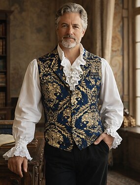 Victorienne Médiéval Renaissance Veste Prince Aristocrate Coupe ajustée Jacquard Col en V Déguisement Homme Viking Fantaisie Royal Carnaval Mascarade Performance Adulte Gilet