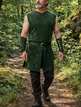 Set Rétro Vintage Médiéval Renaissance Veste Ceinture Taille Attelle de poignet avec accessoires Sans manches Elfe Ranger Col rond Déguisement Unisexe Fantaisie Halloween Carnaval Foire de la