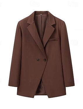 Femmes Blazer Confortable Boutons Mode Occasionnel Couleur Unie Occasionnel Tenue quotidienne Sortir Week-end Régulier Revers Cranté Coupe régulière manche longue Vêtements d'extérieur Marron Automne