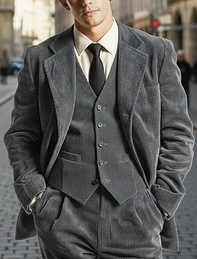Pour des hommes Costume en velours côtelé Occasionnel Affaires Noir Rouge Bordeaux Automne & Hiver Costume / Tailleur Revers Cranté Quotidien Affaires Rayé Coupe sur mesure 3 pièces Simple Boutonnage