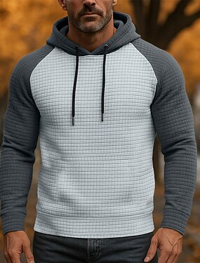 Homme Sweat à capuche Sweat à capuche gaufré Pull Noir Blanche Gris À capuche Uni Patchwork Poche kangourou Texturé Occasionnel Quotidien Sport & Loisir Streetwear Frais Vêtements de sport Printemps