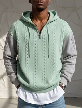 Homme Jacquard Sweat à capuche Sweat à capuche quart zippé Vert Claire Gris Clair À capuche Uni Patchwork Bloc de Couleur Texturé Occasionnel Quotidien Sport & Loisir Streetwear Frais Vêtements de