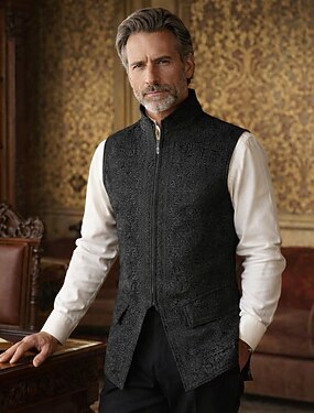 Victorienne Médiéval Renaissance Veste Prince Aristocrate Coupe ajustée Jacquard Col en V Déguisement Homme Viking Fantaisie Royal Carnaval Mascarade Performance Adulte Gilet