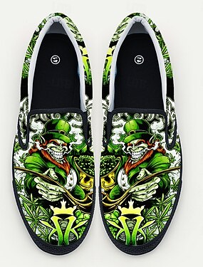 Baskets slip-on pour femmes, ornées d'un adorable imprimé de chien et de trèfle – chaussures confortables en toile verte, parfaites pour les défilés, les festivals et les sorties décontractées.