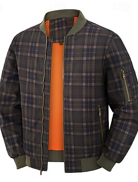 Homme Vest Bomber Veste Décontractée Vacances Quotidien Chaud Avec Poches Automne Hiver Plaid Mode Classique Col montant Régulier Vert foncé Vert Véronèse Veste