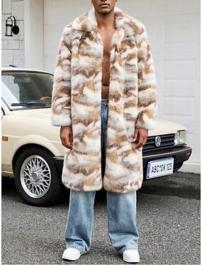 Homme Veste d'hiver Manteau en Fausse Fourrure Vacances Quotidien Chaleur Thermique Toison Automne Hiver Camouflage Mode Streetwear Revers Long Marron Veste