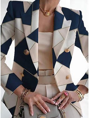 Femmes Blazer Chaud Confortable Boutons ancien Mode Classique Moderne Géométrique Formel Vacances Occasionnel Quotidien Double Boutonnage Régulier Revers Cranté Coupe régulière manche longue
