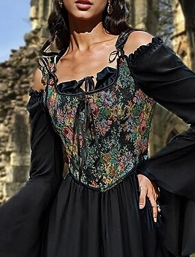 Rétro Vintage Médiéval Renaissance Corset Veste Bustier Fleuri Déguisement Femmes Celtique Fantaisie Halloween Carnaval Soirée Décontracté Quotidien LARP Adulte Corset