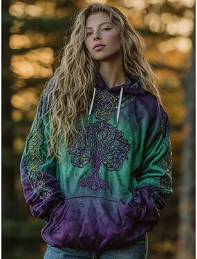 Veste à capuche vintage boho imprimée en 3D pour femmes sweat à capuche patchwork à fleurs pull graphique tribal décontracté à manches longues vêtement de soirée quotidien de rue décontracté vert