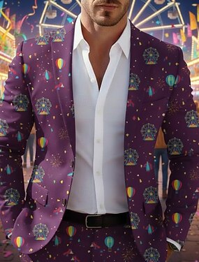 Homme Blazer Affaires Carnaval Mardi Gras Mode Streetwear Automne Hiver Tergal Graphique Ballon Impression 3D Simple Boutonnage veste Pourpre foncé Violet Claire Violet