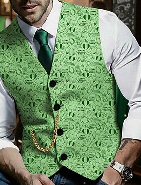 Homme Gilet Extérieur Jour de la Saint Patrick Mode Streetwear Printemps Automne Boutons Coton Respirabilité Mode Graphique Trèfle Simple Boutonnage Col en V Coupe régulière Vert Gilet